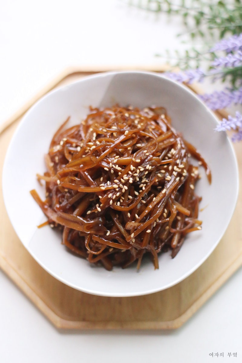 재료 : 우엉 400~450(손질 전) 식용유 2큰술. 양념 : 흑설탕 1.5큰술, 진간장(또는 양조장) 3.5큰술, 맛술 2큰술, 조청 2큰술, 물 3큰술, 통깨 1개. 큰 스푼. 준비물: 식초 1테이블스푼. *조청 대신 물엿을 권장하며, 올리고당은 권장하지 않습니다. 가열 요리에는 물엿과 물엿을 사용할 수 있습니다. 변화는 없지만 가열하면 올리고당의 단맛이 감소합니다. *계량스푼 1개 = 15ml.