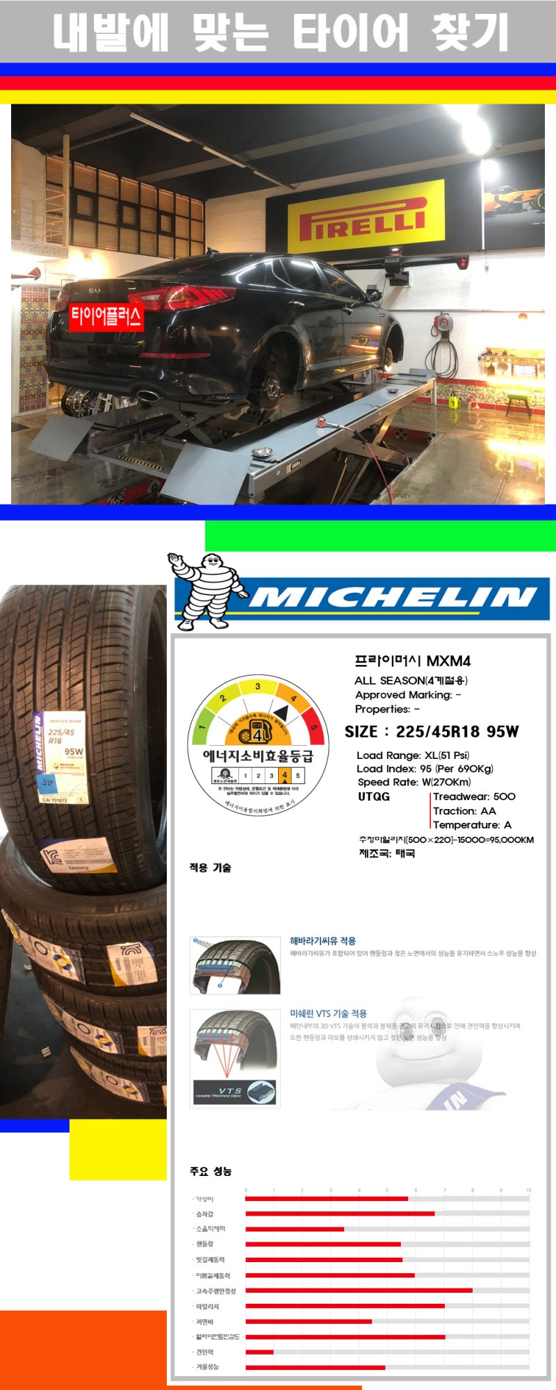한국타이어의 최고 품질의 사계절 타이어입니다.
