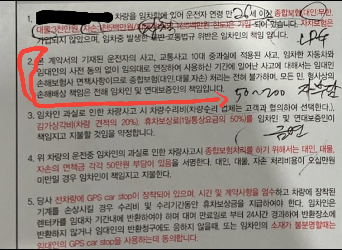 그리고 자동차 보험은 선택 사항인 경우가 많지만, 자동차 보험에 가입하지 않거나 자동차 보험이 적용되지 않는 손상이 있는 경우도 있습니다. 저희 운행중 렌트카의 경우 오래된 스포츠카로 자해하시는 분들이 많아 단 한번의 사고에 대비해 자동차보험을 적용해드리지 않습니다.