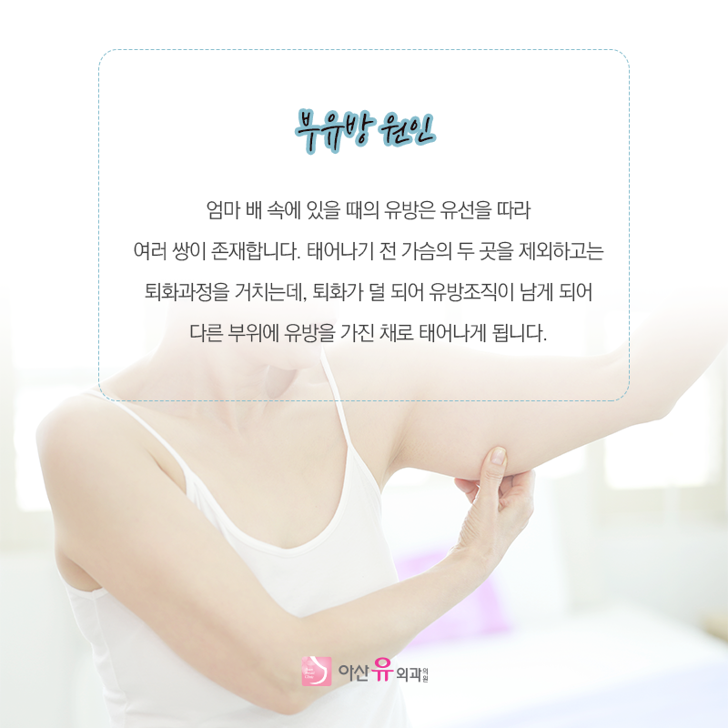심할 경우 가슴확대는 외모 콤플렉스로 작용하기도 하지만 다른 질환을 유발할 수도 있기 때문에 상태를 잘 살펴보고 가슴이 커지는 원인에 따른 관리와 치료가 필요합니다. “가슴확대란?” .주로 겨드랑이 부위에 나타난다. 유방에 존재하는 유선 조직이 발달하여 유방처럼 자랍니다.