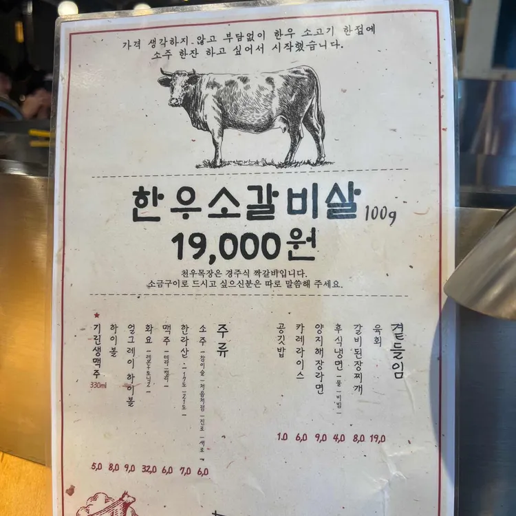 2명이서 담소를 나누며 먹기 좋은 돗찌석도 있고, 테이블석도 있어요! 공간과 테이블 사이가 넓어서 이야기를 나누며 식사하기에도 좋아요. 그래서 용리단길 집회소에는 많은 분들이 찾아오시는 것 같아요! 한쪽에는 엄청난 양의 쇠고기가 준비되는 모습이 보입니다. 용리단길 만남의 장소인 천우목장은 소갈비찜을 맛볼 수 있는 곳이다. 미리 예약하고 방문했는데 밑반찬, 소스, 불까지 모든 것이 바로 세팅되어 있었어요! 주문은 테이블에 있는 키오스크를 통해 해주세요! 소갈비를 비롯한 음식 메뉴도 다양하고, 주류도 다양하게 있어서 여러명이 와서 다양하게 맛보기에도 좋아요. 염장갈비 19,000원. 토배깅이 추천하는 천우목장 최고의 메뉴는 바로 청정소금갈비! 사진은 쇠고기 갈비의 모습입니다. 2인분. 새빨간 마블링에서 알 수 있듯이 신선한 소갈비를 맛볼 수 있습니다! 천우목장을 처음 방문하신다면 소금갈비를 추천드려요! 천우목장은 직원이 아닌 손님이 직접 고기를 구워주는 시스템이에요! 고기를 구워주는 식당보다 불편할 수도 있지만, 먹는 속도를 스스로 조절하면서 천천히 오랫동안 먹고 마실 수 있어서 좋다. 불이 약하면 숯불구이를 달라고 하세요!! 소갈비는 그냥 먹어도 맛있지만, 다양한 반찬과 함께 먹어도 재미있습니다. 개인적으로 백김치가 상큼하고 깔끔해서 소갈비찜과 정말 잘 어울리는 것 같아요!!! 양념갈비 19,000원 ​​깨끗한 소금갈비를 먹은 뒤 양념갈비 2인분을 주문!!!! 약간 매콤한 양념이 들어있지만 소금갈비살에 비해 맛이 조금 더 매운맛이 납니다. 고기 본연의 맛이 옅어지면 양념갈비를 드셔보시길 추천드립니다. !! 천우목장 소갈비는 보기만 해도 맛있다는 걸 알 수 있어요. 황금빛 갈색으로 구워진 맛있는 양념 쇠고기 갈비입니다. 육회 19,000원. 계속 이대로는 안타까워서 주문했어요. 여기는 소갈비살을 모두 섞어서 먹기 편해요. 내가 할 일은 그것을 먹는 것뿐입니다! 하하하. 아삭아삭한 배와 부추가 들어있어서 맛있어 보이네요. 부드럽고 부드러운 생고기와 잘 어울립니다. 소고기가 싱싱해서 생고기도 신선해요!!! 너무 부드러워서 입에서 녹습니다. 얼그레이 하이볼을 녹여라 술꾼으로서 한 잔 마시고 싶어서 얼그레이 하이볼을 마셔보았습니다. 적당히 달달하고 얼그레이 특유의 씁쓸한 맛이 있어서 소고기와 정말 잘 어울렸어요! 저같은 술꾼에게는 딱이었어요. !제안! 비빔냉면과 소갈비에 대해 어떻게 생각하시나요? 면발이 가늘고 부드러워서 아주 잘 넘어갑니다 ㅎㅎ 맛이 많이 맵지 않아 소갈비의 느끼함을 잡아주고 깔끔한 마무리를 선사합니다. 50m NAVER 더보기 / OpenStreetMap 지도데이터 x NAVER /OpenStreetMap Map Controller Legend Real Estate 부동산 동시군 구시군 산고리읍 도국 천우목장 천우목장 1층 3, 서울시 용산구 한강대로54길 용리단길 만남의 장소로 추천하는 천우목장! 소갈비와 생고기가 모두 신선하고 술도 다양합니다. 연말에 한잔하러 가보시길 추천드려요. 본 포스팅은 제품이나 서비스를 대가로 솔직하게 작성되었습니다.