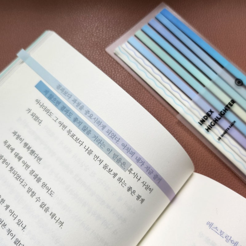 이전 이미지다음 이미지아이코닉 인덱스 롱 하이라이터 교보문고에 갈 때마다 참새가 물방앗간을 지나갈 수 없듯이, 나오기 전 항상 핫트랙스에 들러 문구류를 살펴봅니다. 우연히 해보고 싶은 디자인이 눈에 띄어서 이 인덱스를 구매하게 되었습니다. 얇고 종이에 흔적을 남기지 않고 긴 포스트잇으로 원하는 문장 전체를 표시할 수 있어 매우 편리합니다. 밑줄을 긋으면 삐뚤어지고 아프지만, 단번에 똑바로 표시할 수 있어서 마음이 편해요. 반으로 자르는 플래그와 3분할로 자르는 플래그가 포함되어 있어 세세한 디테일과 편의성까지 고려한 점도 너무 마음에 들었어요! 2. 문진